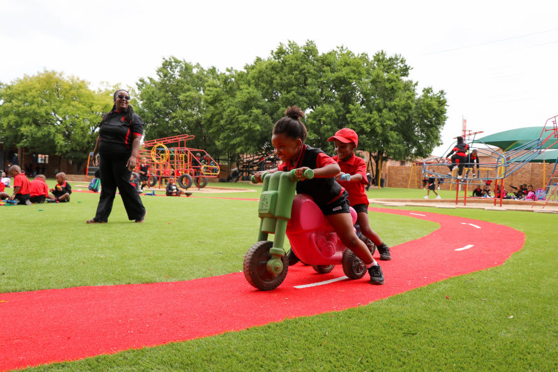 - Large playground with artificial grass, bicycle tracks and jungle gyms